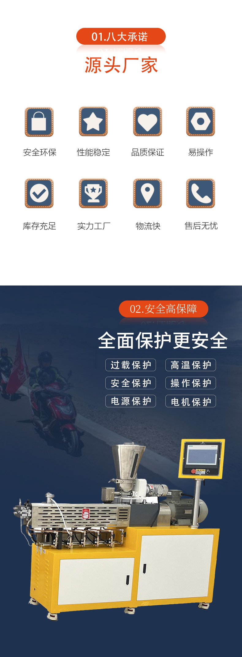 本機主要由主驅動電機、傳動裝置、擠出裝置、加料斗、電控系統等組成.